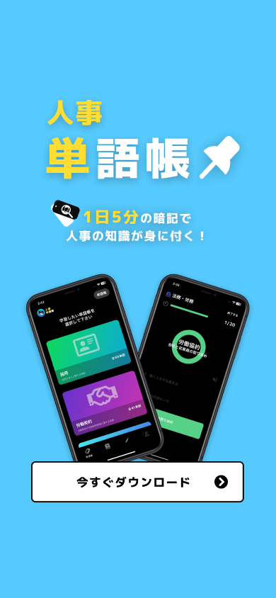 いつでも、どこでも、隙間時間を有効活用して、人事用語を効率的に学べるので、ぜひダウンロードしてみてください。